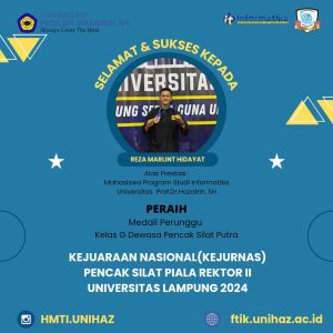 Selamat dan Sukses untuk Reza Marlinto Hidayat, Mahasiswa Informatika Universitas Prof. Dr. Hazairin, SH, Peraih Medali Perunggu di Kejuaraan Nasional Pencak Silat Piala Rektor II Universitas Lampung 2024